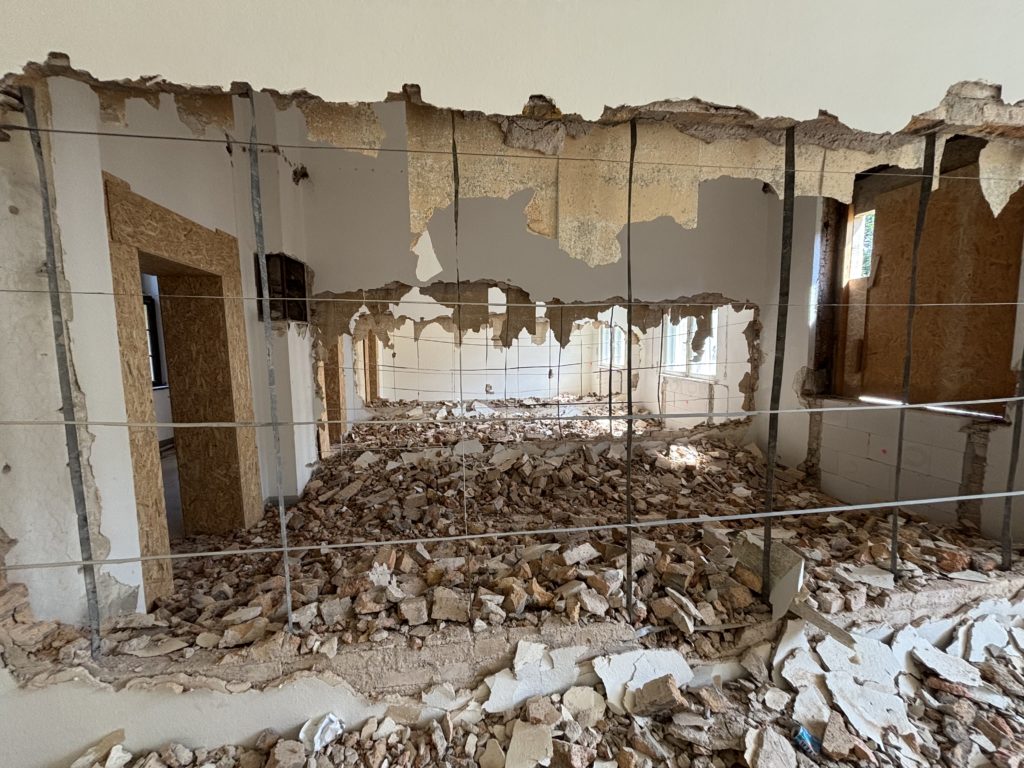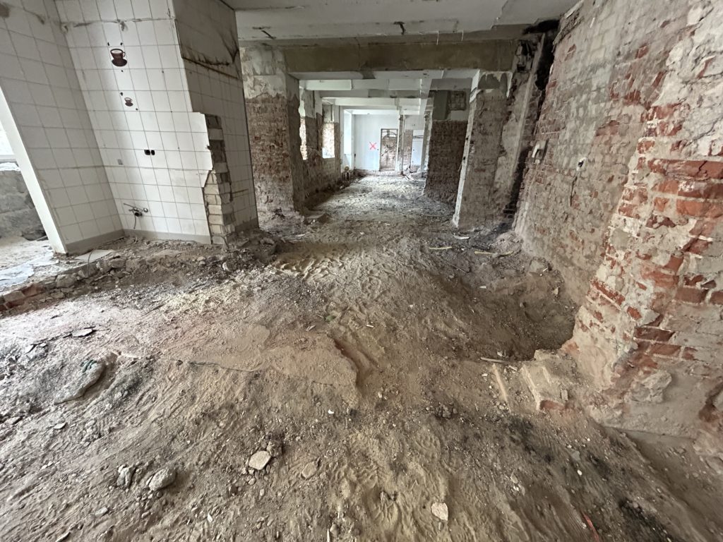 Deckenabbruch weitergeführt und in Fertigstellung, Wandabbruch weitergeführt.