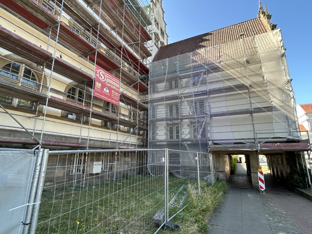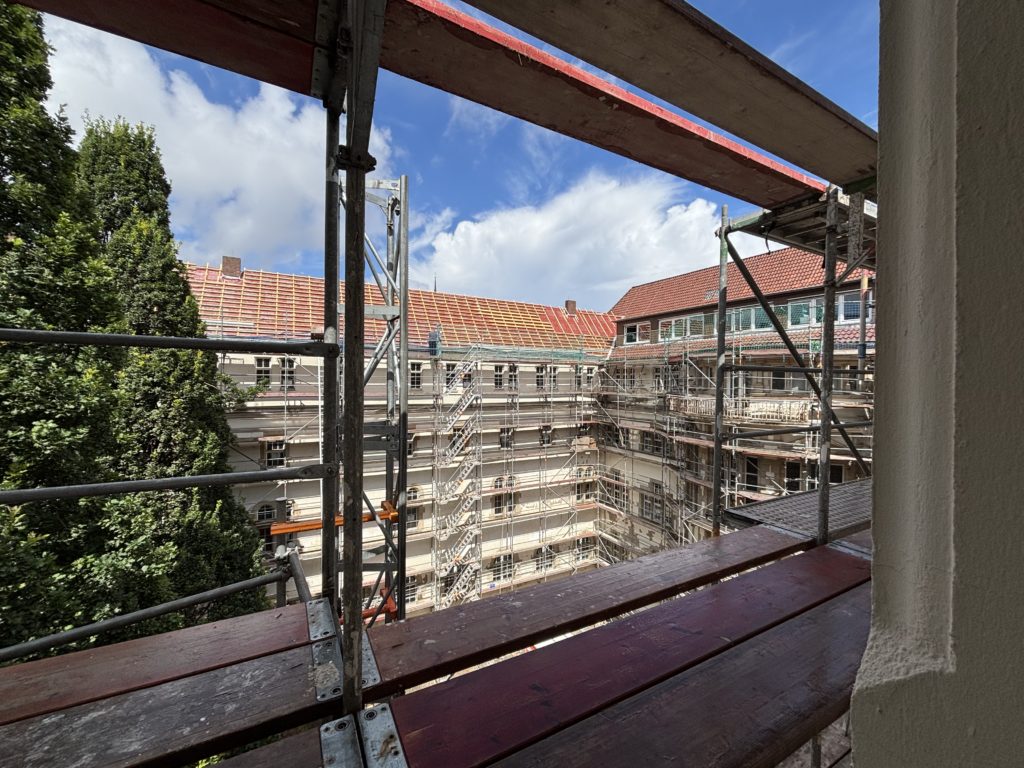 Gerüstbau im Innenhof abgeschlossen.